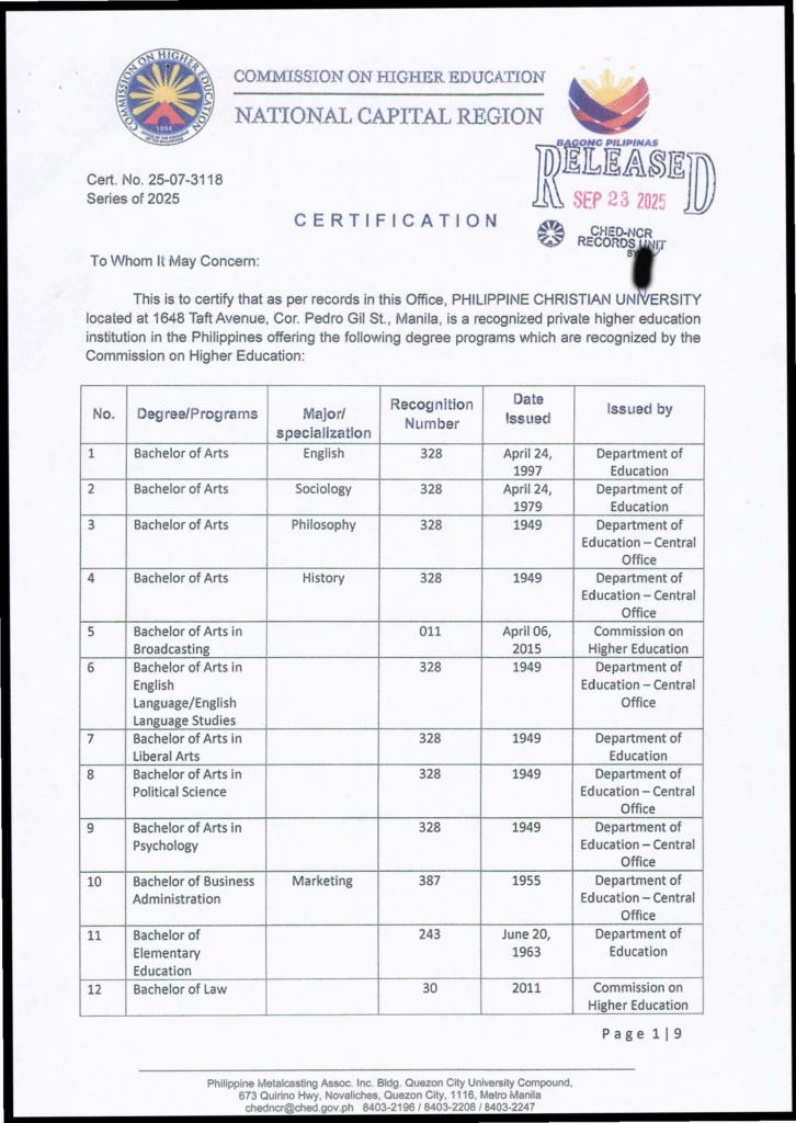 Fostering Educational Excellence: Philippine Christian University and CREATE-UCCP