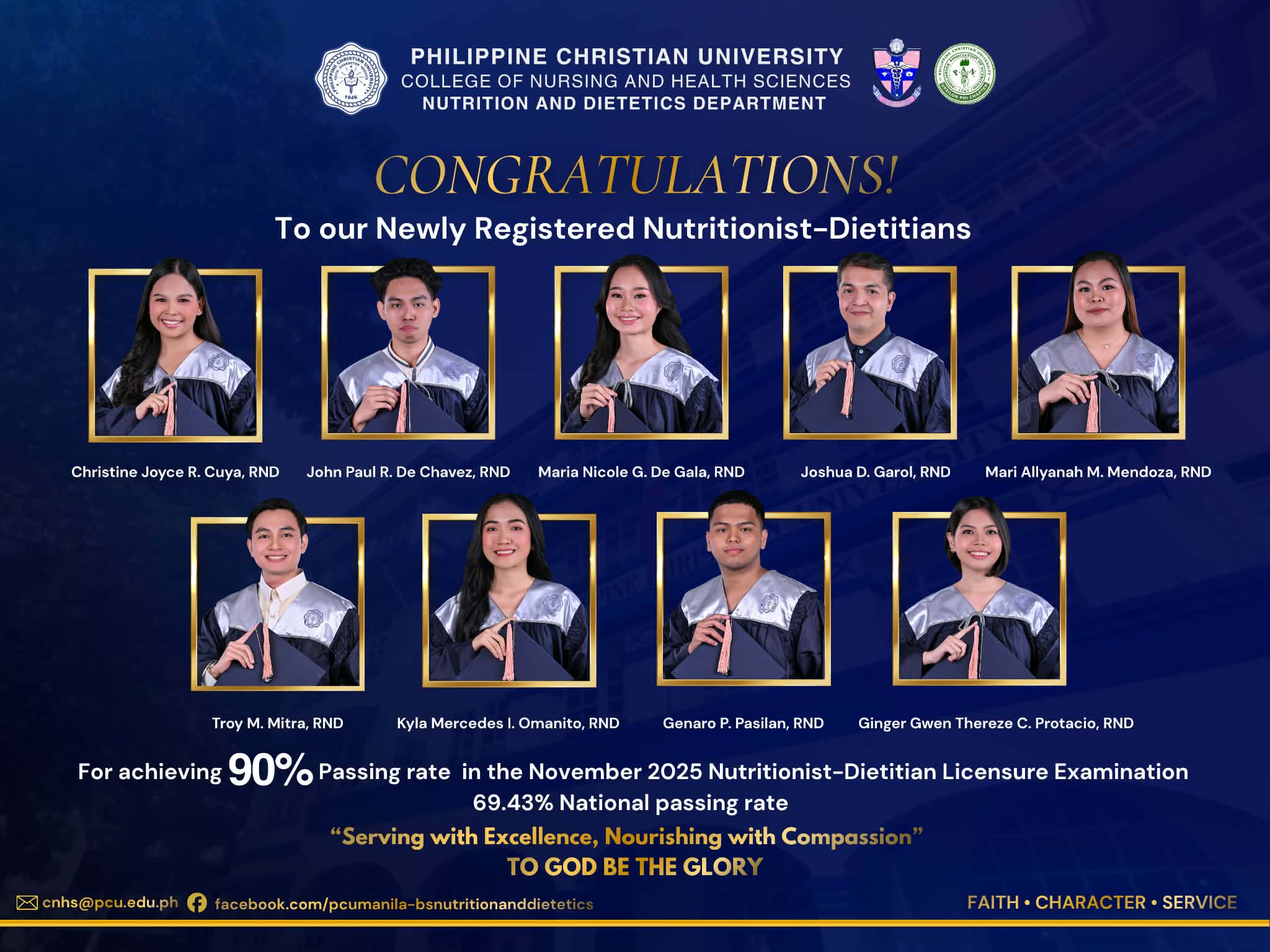 PCU-CNHS Graduates work professionally as nurses, nutritionists, and dietitians in a range of clinical, private practice, community, and industry settings.